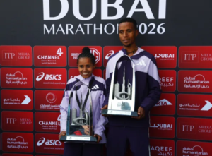 DUBAI (Agencies): Ethiopians dominated the Dubai Marathon on Sunday, with debutant Nibret Melak winning the men’s race and Anchinalu Dessie taking gold in the women’s race, as runners from their country swept the women’s podium. Melak finished in two hours and four minutes, nearly two minutes ahead of compatriot Yasin Haji, who took silver, while Rwanda’s John Hakizimana came in third. Dessie shaved nearly four minutes off her personal best to finish in two hours, 18 minutes and 31 seconds to win the women’s race, after compatriot Muliye Dekebo, who was leading the race, suffered stomach problems with little more than two kilometres to go. Fellow Ethiopians Muliye Dekebo and Fantu Worku finished second and third as Dessie won her third marathon in a row, having clinched gold in Seville and Beijing last year. “It’s nice to run a personal best, but I think I can even run faster in the future,” said Dessie. Melak, who took gold in the 10,000-meter race at the 2023 African Games, became the sixth Ethiopian debutant to win the Dubai Marathon. “It was always my goal to win on my debut… my big goal in the future is to break the world record,” said Melak.
