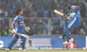 THIRUVANANTHAPURAM (Agencies): Ishan Kishan smashed a 42-ball hundred as India showcased their batting firepower ahead of this month’s Twenty20 World Cup, beating New Zealand by 46 runs here on Saturday to seal a 4-1 series win. Kishan clobbered 10 sixes in an incendiary 103 off 43 balls to anchor India’s imposing 271-5 at the Greenfield International Stadium. New Zealand opener Finn Allen hammered six sixes in a 38-ball 80 to give the chase early momentum but they were bowled out for 225 after seamer Arshdeep Singh took a career-best 5-51. Earlier, Kishan, who missed the previous game in Visakhapatnam with a niggle, returned at number three and tore into the attack from the outset. Ish Sodhi bore the brunt in the 12th over, when Kishan lashed four fours and two sixes in a seven-ball over that cost 29 runs. After playing second fiddle to Kishan for much of their rapid 137-run stand off 58 balls, India captain Suryakumar Yadav (63) exhibited his own power-hitting prowess by smashing three sixes in a Jacob Duffy over. Kishan brought up his 100 with a six before Duffy deceived him with a slow bouncer and Hardik Pandya smacked four sixes in his 42 off 17 balls down the order. New Zealand lost opener Tim Seifert cheaply but Allen and Rachin Ravindra (30) kept them in the hunt with a century stand before their chase was derailed. After spinner Axar Patel (3-33) removed Allen and Glenn Phillips, seamer Arshdeep demolished the New Zealand middle order to claim his maiden five-wicket haul in T20 Internationals.