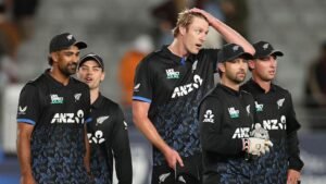 Jamieson had also been effective when New Zealand levelled the series in Auckland on Thursday, conceding 12 in the final over of a nerve-jangling three-run victory. New Zealand lost their way after opener Devon Conway was run out for 56 off 34 balls, with Daryl Mitchell the most effective of the middle order with a lively 41. Alick Athanaze with 31 and Ackeem Auguste, who scored 24, provided a steady start to the West Indies chase but the loss of six wickets for 35 runs stunted their hopes. Duffy took 3-36 and Ish Sodhi 3-34, which moved the leg-spinner to third on the all-time list of T20 international wicket-takers with 156. Sodhi is behind only the 182 victims of Afghanistan’s Rashid Khan and the 164 of fellow New Zealander Tim Southee. “The heart rate was pumping there again. Those death bowlers are doing a great job,” Sodhi said. “The West Indies have such power through that lower to middle order. It’s on show at the moment and the series has been a great spectacle so far.” The fourth T20 is in also in Nelson on Monday.