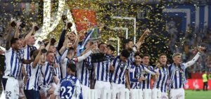 Sociedad looked like hanging on until Alvarez struck an unstoppable shot from just inside the area, letting Thiago Almada’s pass through his legs before turning to send the ball into the top corner. In the opening period of extra time Musso pulled off a double-save from Luka Sucic and Oskarsson, with Alvarez hitting the upright at the other end, as both sides created chances before running out of steam and penalties beckoned. Marrero danced across his line as the Atletico players lined up their penalties and his mind games paid off. “I knew that if it went to penalties, I had a lot of confidence in myself,” he said. “The team and the fans did too. I still can’t believe it.” Matarazzo has worked a remarkable turnaround at Sociedad since taking over in December with the club hovering above the relegation zone but now seventh in the standings and, even more importantly, with a trophy to show for their work. Simeone’s Atletico have one final chance of silverware, with a last-four meeting against Arsenal in the Champions League. “We have a beautiful challenge ahead of us. We want the Champions League and we’ll do everything possible to win it,” Atletico captain Koke said. “But tonight is a sad night.”