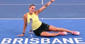 BRISBANE (Agencies): World number one Aryna Sabalenka brushed aside Marta Kostyuk 6-4 6-3 in the Brisbane International final on Sunday to retain the title without losing a set ahead of her bid to reclaim the Australian Open title this month. Kostyuk had beaten top 10 players Jessica Pegula, Mirra Andreeva and Amanda Anisimova on her way to the final but was no match for the sheer power of the U.S. Open champion. Sabalenka is determined to win back the Australian Open title she relinquished last year and her performance in the fierce Brisbane heat, suggests she will be hard to beat at Melbourne Park this month. “Thank you to my team for handling me. I’m really the toughest one to handle, and you guys are the toughest people in the world if you can handle me,” she told the crowd before directing a comment at partner Georgios Frangulis in the stands.